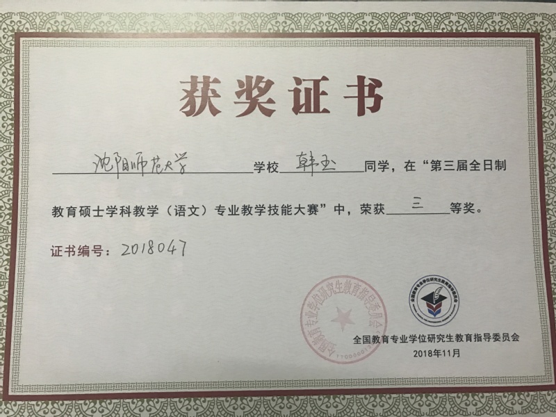 本次大赛主办方一改常规,创新赛制流程,匿名打分环节体现了其对每一位评委分数的尊重,力争做到公平公正。本届教学技能展示活动共有12名选手获得一等奖,24名选手获得二等奖,36名选手获得三等奖,48名选手获优秀教学设计奖。公司参赛代表2017级教育硕士孟璐、韩玉分别荣获大赛二等奖、三等奖,孟庆欣教授获优秀指导教师奖。