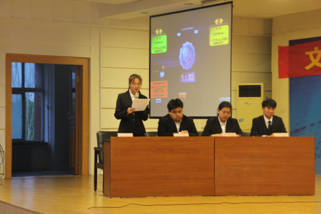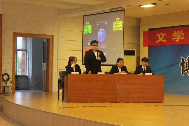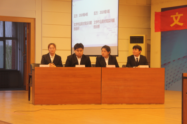 辩论赛正式开始,4班的四位同学首先开场,他们从文学重在思考而非解释、追问并思考是从现实世界上升到精神世界的必经之路这两方面进行论证。反方也不甘示弱,他们从文学作品回答现实问题的三个益处进行阐释:回答有利于帮助大众理解问题;有利于给读者拓展思维的空间;有利于为解决现实问题提供参考方向。双方观点不一,赛场上又会有怎样的火花呢?
