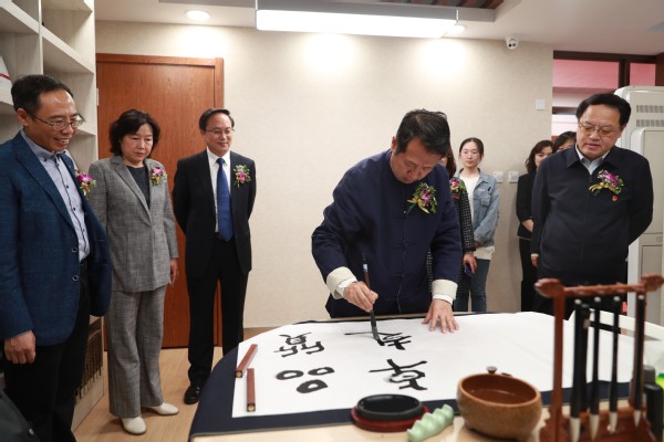 揭牌仪式上,员工代表为员工赠送校徽。师弟师妹们将校徽放在亲手折制的“红心”上,并亲手书写了“欢迎员工回家”。在激昂的乐曲声中,员工张振忠、高琛、刘朝忠和党委书记贾玉明共同为“卓越教师养成工作坊”揭牌。红色幔布翩然落下,全场响起热烈掌声。
