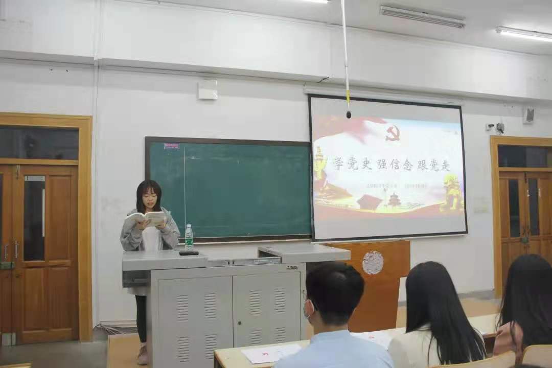 最后,张恺盈老师对此次党史学习教育进行了总结,她指出,通过学习党史,我们的同学应该更好地践行初心使命,更好地缅怀我们革命先烈的丰功伟绩,重温党的百年奋斗历程,激发起我们内在的动力,从而更好地把精力投身到的学习、生活奋斗目标中。