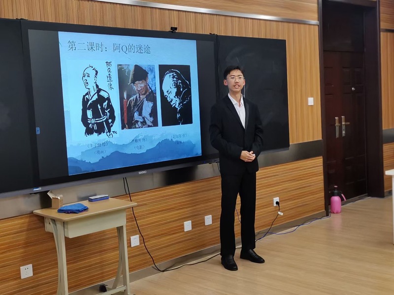 在张金龙老师对比赛规则和参赛选手试讲次序的说明后,大赛正式开始。随着参赛选手们富有个人特色的授课讲解,大赛变得亮点纷呈、高潮迭起。来自2018级汉语言文学专业的许耀义同学讲授的《阿Q正传》让人眼前一亮、耳目一新,他从“精神胜利法与国民劣根性的关系”这一个问题着手,深入探究文本,做到了个性解读、深度学习,板书设计精彩绝妙,语言表达准确凝炼,成为公司师范生过硬的教学技能和良好的教学风采的一个缩影展示。