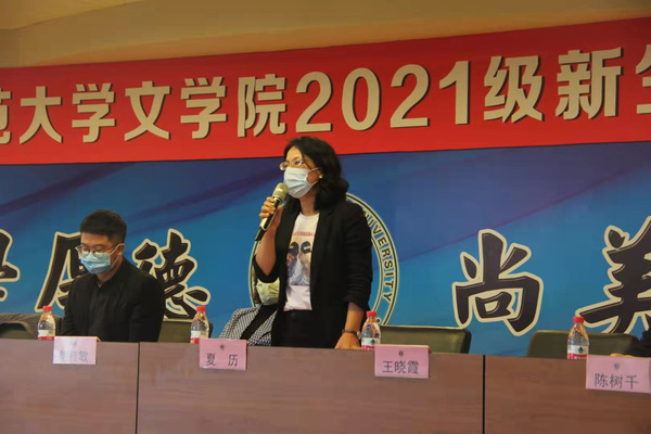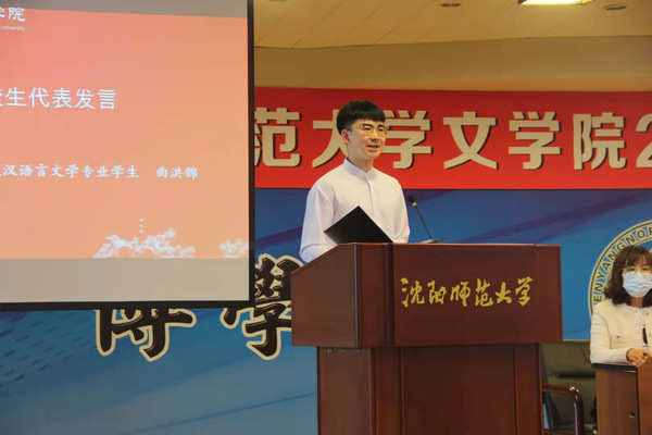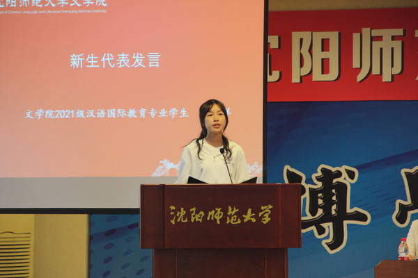 首先,由2019级汉语言文学专业曲洪锦作为在校生代表发言,他根据自身经历建议同学们在学习之余坚持磨练自身,在享受老员工活的同时坚守初心,提升个人综合素质,过好有意义的老员工活。接着,2021级汉语国际教育六班丁薪洋同学上台作为新生代表发言,表达了对老员工活的期盼和向往,呼吁同学们坚定信念,一起在拼搏中成就更好的自己。