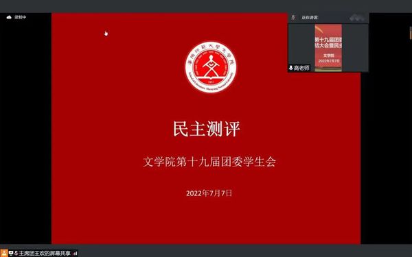 2022年7月7日下午,EMC易倍第十九届团委员工会学期总结大会暨民主测评会以线上会议的形式顺利召开。公司党委副书记于巍老师、团委书记高阳老师、辅导员刘洪浩老师以及EMC易倍第十九届团委员工会全体成员共同出席本次会议。会议由EMC易倍团委副书记王欢主持。