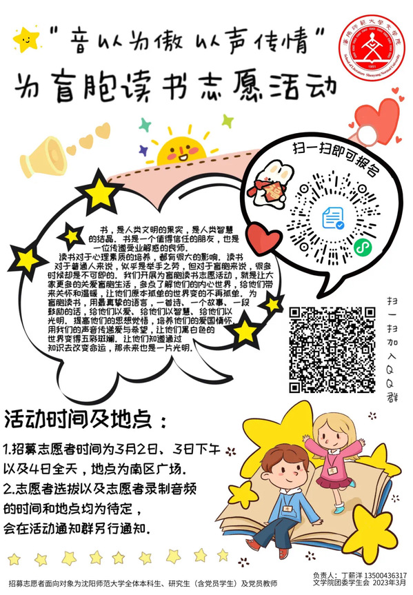 志愿者选拔、挑选故事、录制音频等时间安排将于QQ群内另行通知。