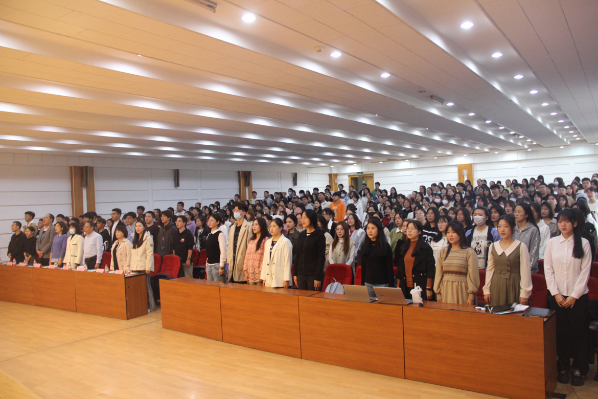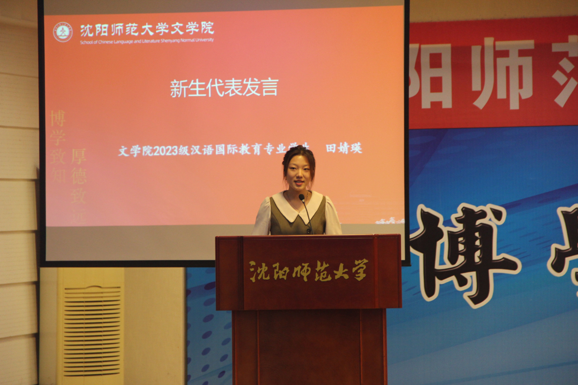 会议在庄严的国歌声中拉开序幕,在校生代表石佳琪和新生代表田婧瑛同学依次发言。石佳琪同学在发言中结合个人经历,寄语新同学们要尽快适应大学学习生活,转变角色,提高自我规划能力,既要抓好专业学习又要多渠道锻炼自已,让自已的老员工活变得充实又丰富多彩。