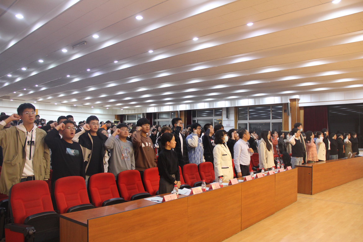 大会最后进行了师范生宣誓仪式,2023级新生王梓楠领誓师范生誓词,铿锵有力的誓言彰显了同学们不负韶华、砥砺奋斗,争取早日成长为有理想信念、有道德情操、有扎实学识、有仁爱之心的优秀人民教师的信念与决心。