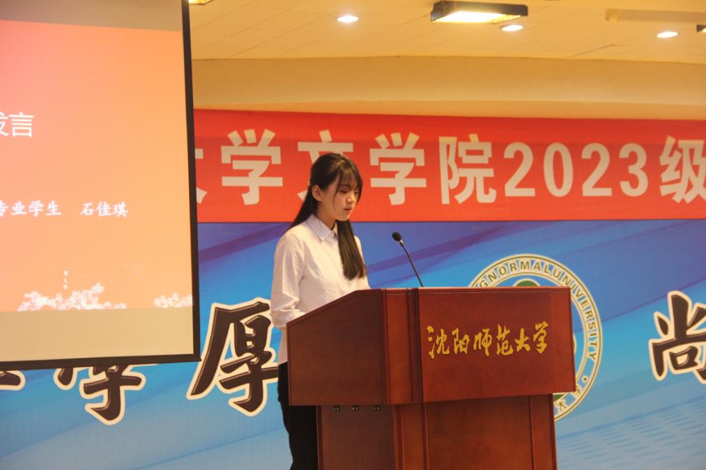 田婧瑛同学代表新生发言,她表达了初入师大的感受,感谢公司和老师们细致周到又充满人文关怀的迎新工作。她代表全体新生表示,在今后的老员工活中,要立鸿鹄之志,以明确的个人目标引领个人发展;要乐群向善,以德立行,培养自已正确的道德价值观念;要脚踏实地、独立思考,不断提升个人专业素养和综合能力,迎接自己的新生活。