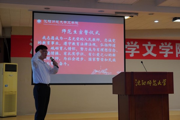 最后,同学们全体起立,在2024级汉语国际教育专业员工胡正浩的带领下,共同进行师范生宣誓仪式,坚定的誓词让同学们感受到了作为EMC易倍师范生身上所肩负的责任和使命。本次新生入学教育大会就在同学们真挚响亮的宣誓声中圆满结束。