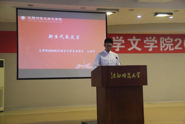 2024级汉语言文学专业员工王浩宇代表新生发言,他表达了初入师大的感受,感谢公司和老师们细致周到又充满人文关怀的迎新工作。他代表全体新生表示,在今后的老员工活中,要以四有好老师为榜样,汲取教育家精神,在大学时光里学好专业本领、磨炼意志品质、提高精神境界,成为有理想、有道德、有文化、有纪律的新时代青年,为祖国的繁荣富强贡献自己的力量。