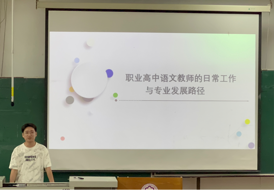活动伊始,吴德隆老师做了自我介绍,接着进行了主题为“职业高中语文教师的日常工作与专业发展路径“的讲座。