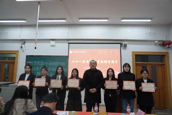 第二十一届团委员工会主席团代表王语嫣同学对过去一年的工作做出总结,对各位老师、同学的信任与支持表达感谢,她强调了服务同学、传承文化、勇于创新、加强团队建设以及保持学习与反思的重要性,并对新一届成员提出了期望,鼓励他们承担使命,面对挑战,希望新一届的团学成员能够不忘初心,不断完善自我,为EMC易倍团委员工会增添活力,创造新的成就。与会领导和老师为第二十一届团学主席团、部长颁发聘书和荣誉证书。