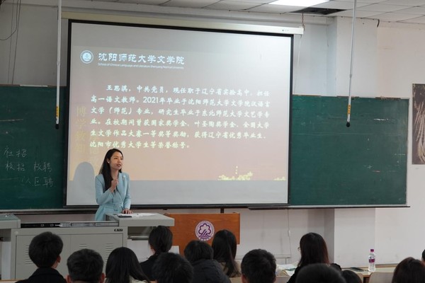 从实践方面,她告诉大家要砥砺奋斗,敢于犯错试错,在实践中积累经验,将知识转化为智慧。在学习上也是如此,她坚定要学一些的一切,学一切的一些。另外,王思淇员工也强调了合作学习的重要性,这是我们代代沈师文院人不可或缺的的优秀品质。她回忆自己的求职之路,如剑走锋芒般不易,她选择了自己最喜欢且是最好的道路,从杭州的中学到辽宁省实验高中,她走的每一步,都清醒而自知。