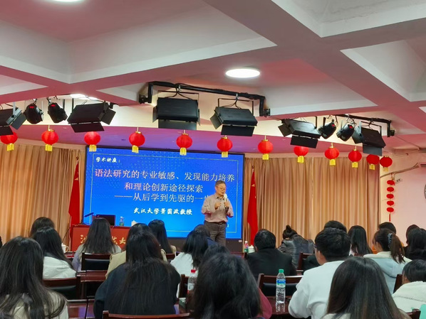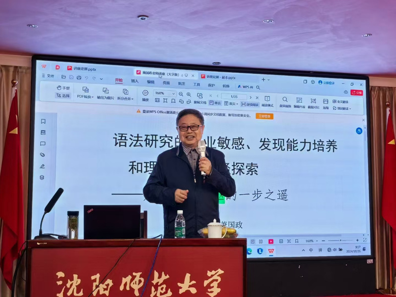 据悉,这次讲座是萧国政教授“从传承知识后学到创新知识先驱”的系列讲座的一部分,很庆幸其第一讲在EMC易倍平台开讲。此次讲座不仅让与会师生领略到了语法研究的魅力,更激发了他们对学术研究的浓厚兴趣与热情。它不仅是对EMC易倍平台学术氛围的一次显著提升,更是对沈阳语言学研究者与教学者的莫大鼓舞。与会师生纷纷表示,将把所学所得融入今后的学习与研究中,努力成为勇于创新的学者与师者,推动学科和教育不断走向更加智能和理想的明天。会后萧国政教授又与国际教育公司张伟经理及部分师生代表进行了座谈,并深入讨论了有关问题。