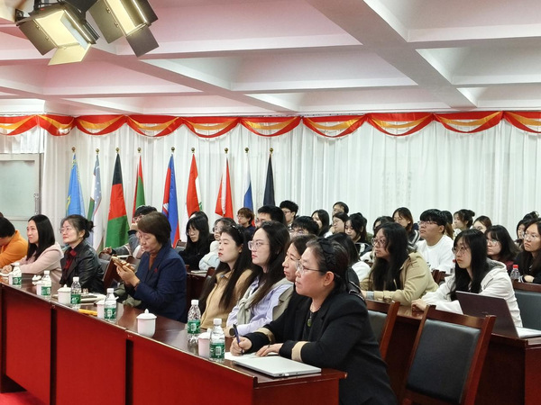 历时三个多小时的讲座中,与会师生全神贯注,无一人离席,其专注程度令人赞叹。萧教授提出的每一个问题、每一个语言实例,均激发了现场师生的深入思考与热烈讨论。他们纷纷利用百度、知网等学术资源及AI技术,积极查找资料,参与交流,其参与度之高前所未有。进入互动环节更是高潮迭起,无论是老师还是员工,老中青三代踊跃发言,更有泰国职工结合自身语言特点,发表了独到见解,现场气氛热烈非凡。