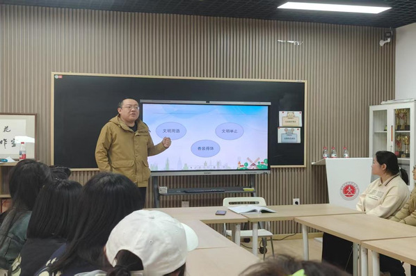 徐浩然同学详细说明了公司寝室卫生检查标准和评分细则、作息时间、用电防火安全、防范电信诈骗、文明寝室建设等方面相关规定,倡议各位寝室长要带动寝室学风、文化建设,以增强集体凝聚力为核心开展形式丰富的寝室文化活动,维护寝室和谐向上的氛围,同时要利用公司“一站式”员工社区以及为同学们提供的粉笔字训练的小黑板,强化师范生基本技能训练。