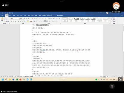 此次分享会加深了同学们对“挑战杯”赛事的认识并增强了同学们参赛的信心,希望同学们把参与学科竞赛作为检验学科专业知识,提升创新思维能力的有效途径,在比赛中提升自我、完善自我、发展自我,增强当代青年的责任感和使命感,写好自己的青春答卷。