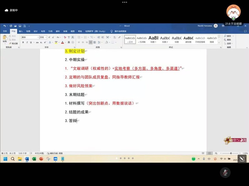于泊祯卿围绕“初期选题、中期实操、末期结题”三个部分展开分享。在筹备初期,她指出精准选题是首要任务,可遵循“社会痛点+专业优势+小切口创新”的选题策略,同时要根据选题进行跨学科的组队,合理选择指导教师,并要制定具体详尽调研计划,这些前期准备会为项目顺利推进奠定了坚实基础。步入中期实操阶段,她强调要加强实地考察的多元化与深入性,提倡结合问卷、访谈等多种方式广泛收集样本,确保数据充分且具有说服力。负责人要定期与团队成员复盘,并向指导教师汇报项目进度,及时改进问题。同时,要做好风险预案,提前思考项目可能遇到的问题及应对措施。及至末期结题,她建议材料撰写要突出创新点,用可靠详实的数据支撑观点。最后,她还贴心分享了时间管理、保持信心及遵循比赛规则的几点注意事项,为同学们的参赛之路提供了宝贵的实战指南。