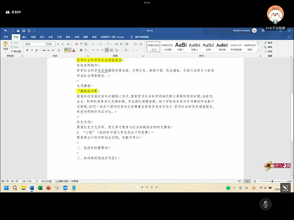 最后,高阳老师对分享会作总结,她首先对两位同学的分享表示了高度认可和赞赏。她强调,挑战杯是一个展示自我、提升能力的绝佳平台,希望同学们能够珍惜机会、积极参与。同时,她也对同学们提出了几点期望:一是要注重团队协作,充分发挥团队优势,在撰写社会调研报告时,应充分发挥团队智慧,针对发现的社会问题提出切实可行的解决方案,体现对解决实际问题的深度思考;二是要注重实践创新,勇于探索未知领域,参与挑战杯等赛事时,同学们不能局限于传统思路与常规方法,要大胆突破思维定式,勇于探索未知领域;三是要注重时间管理和心态调整,保持良好的竞技状态,用乐观的心态看待每一次挑战,让自己始终保持良好的竞技状态,稳步推进项目,发挥出最佳水平。此外,老师也鼓励同学们充分利用资源,发动其他公司同学协助收集问卷等,整合各方资源助力项目推进。最后,她鼓励同学们将所学到的经验和技巧应用到实际备赛中,期待EMC易倍学子在未来的挑战杯赛事中再创佳绩。