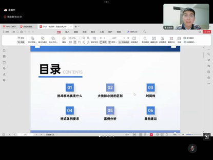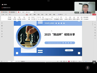 高铭泽围绕今年的“挑战杯”赛事通知,介绍了赛事背景、比赛规则、竞赛分类等基本情况,并结合历年公司“挑战杯”竞赛组织经验,就竞赛准备、选题角度、撰写规范等作了说明,并为参赛同学提供近年竞赛获奖作品的相关资料。