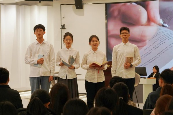 在启动仪式最后,在辽宁省中华诵读大赛中获奖的杨斯婷、张梦飞、王浩宇、赵健博等几位同学朗诵了《读书人是幸福人》。“读书人是世间的幸福人,因为他除了拥有现实的世界之外,还拥有另一个更为浩瀚,也更为丰富的世界。现实的世界是人人都有的,而后一个世界却为读书人所独有。”在同学们的精彩诵读中,让同学们真切感受到读书人的幸福、读书人的快乐。