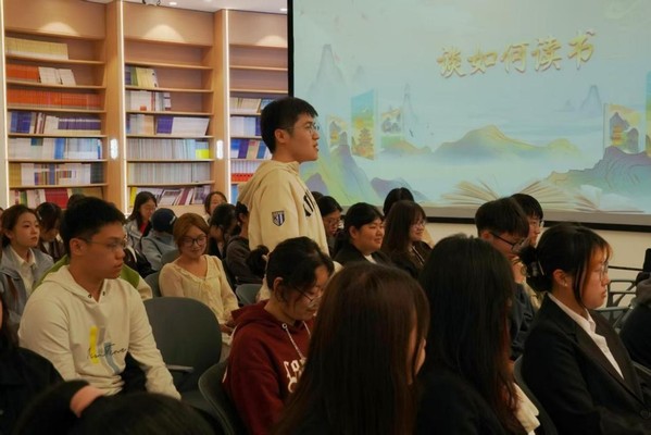 三位老师分享后,同学们积极和老师们探讨自己在阅读中产生的困惑和遇到的问题,三位老师耐心地进行了解答,让同学们明白:读书本身无关时间,无关地点,无关环境,读书之心在,文义自然来。